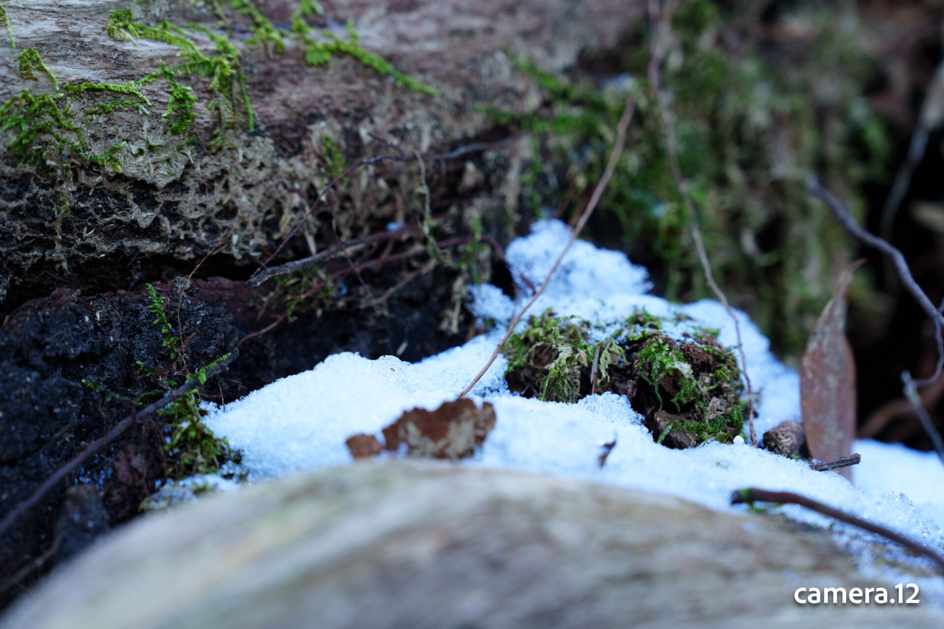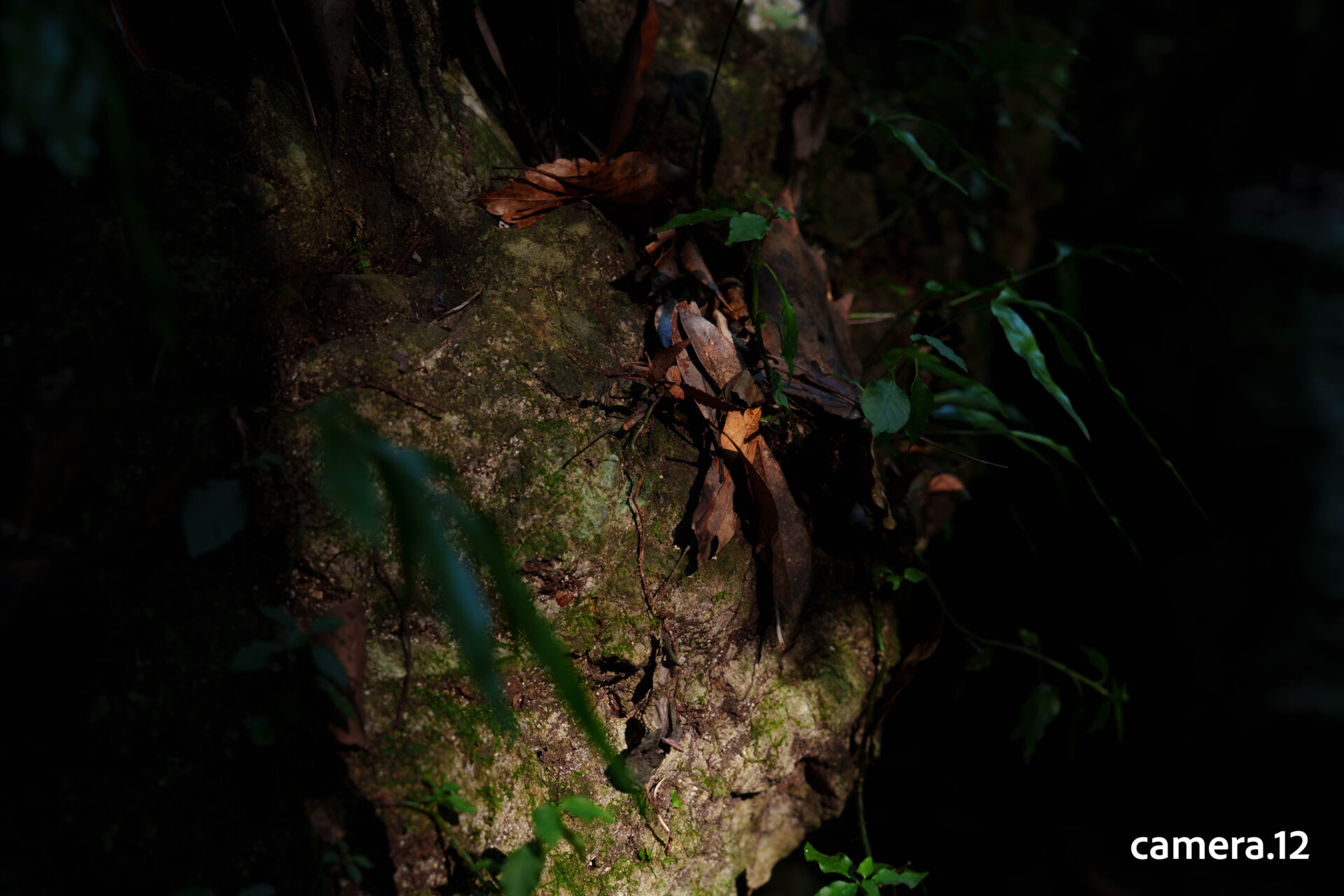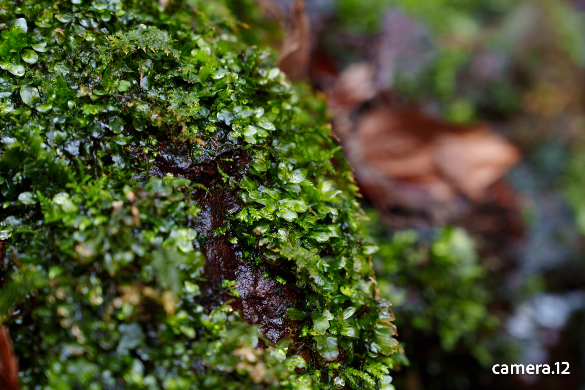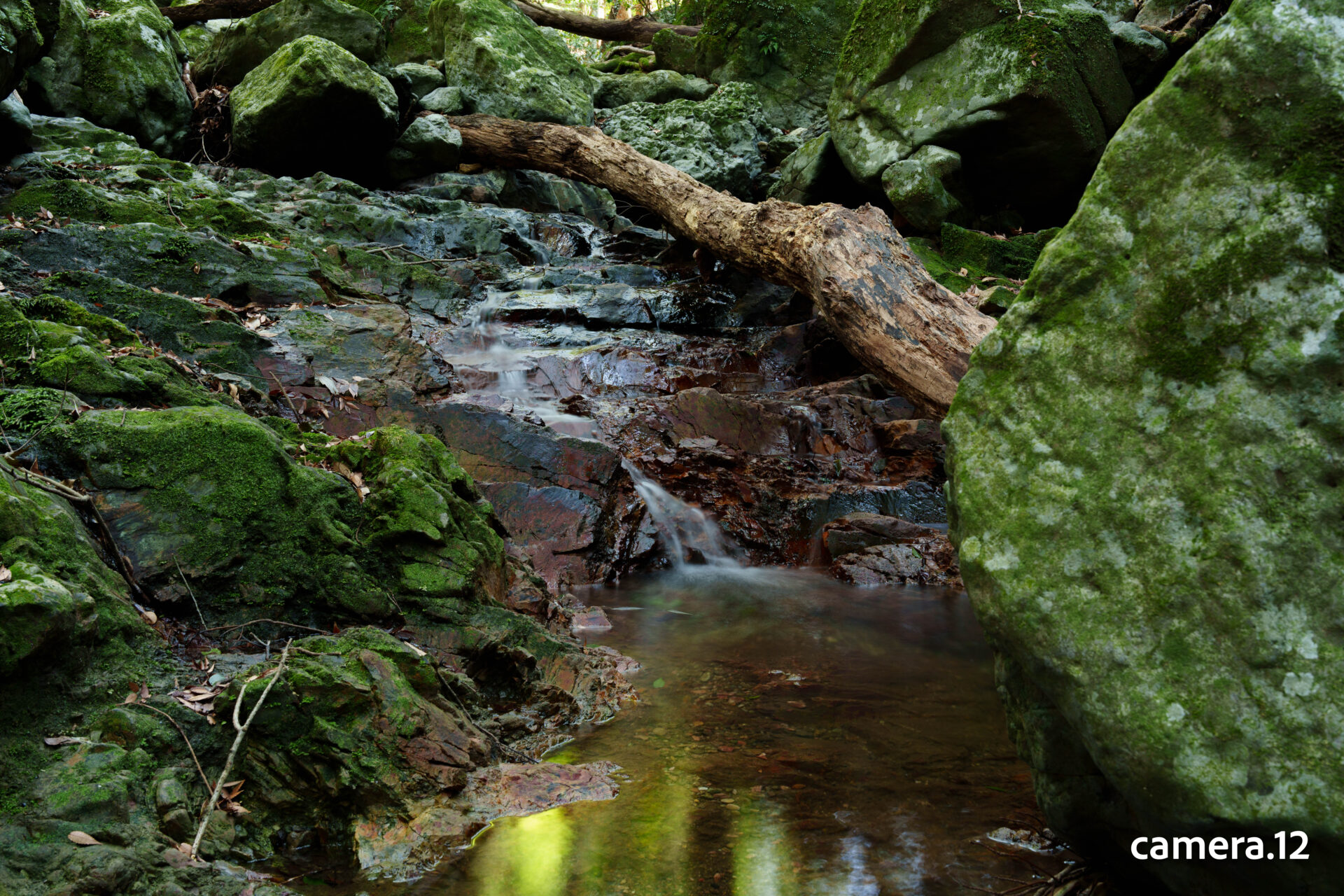 この山は水が豊富で低山ではあるが目をひく被写体は多い。写真はSS1/13秒。α7R5のボディ内手ぶれ補正性能であれば広角の場合手持ちでも問題ないが望遠端70mmの最短撮影距離ではブレてしまった。