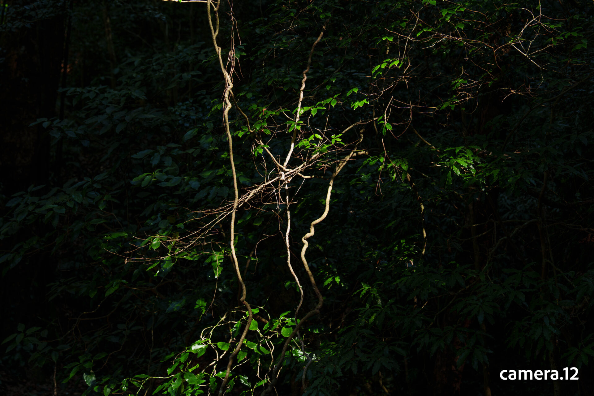 暗い樹林帯が続く登山道も開放F2.8であれば6100万画素の超高画素機でもノイズは気にならない。