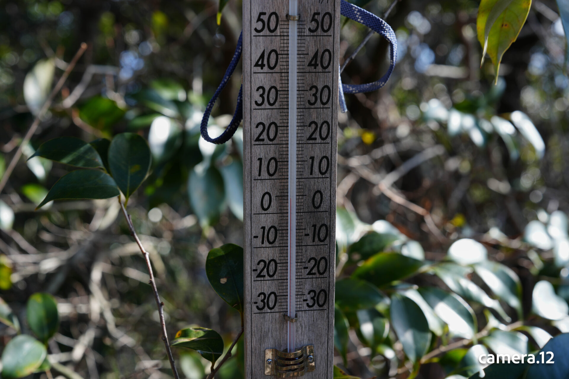 山頂には温度計が設置されている。平地ではそれほど寒くないが山頂は日中でも気温は0度を下回っている。