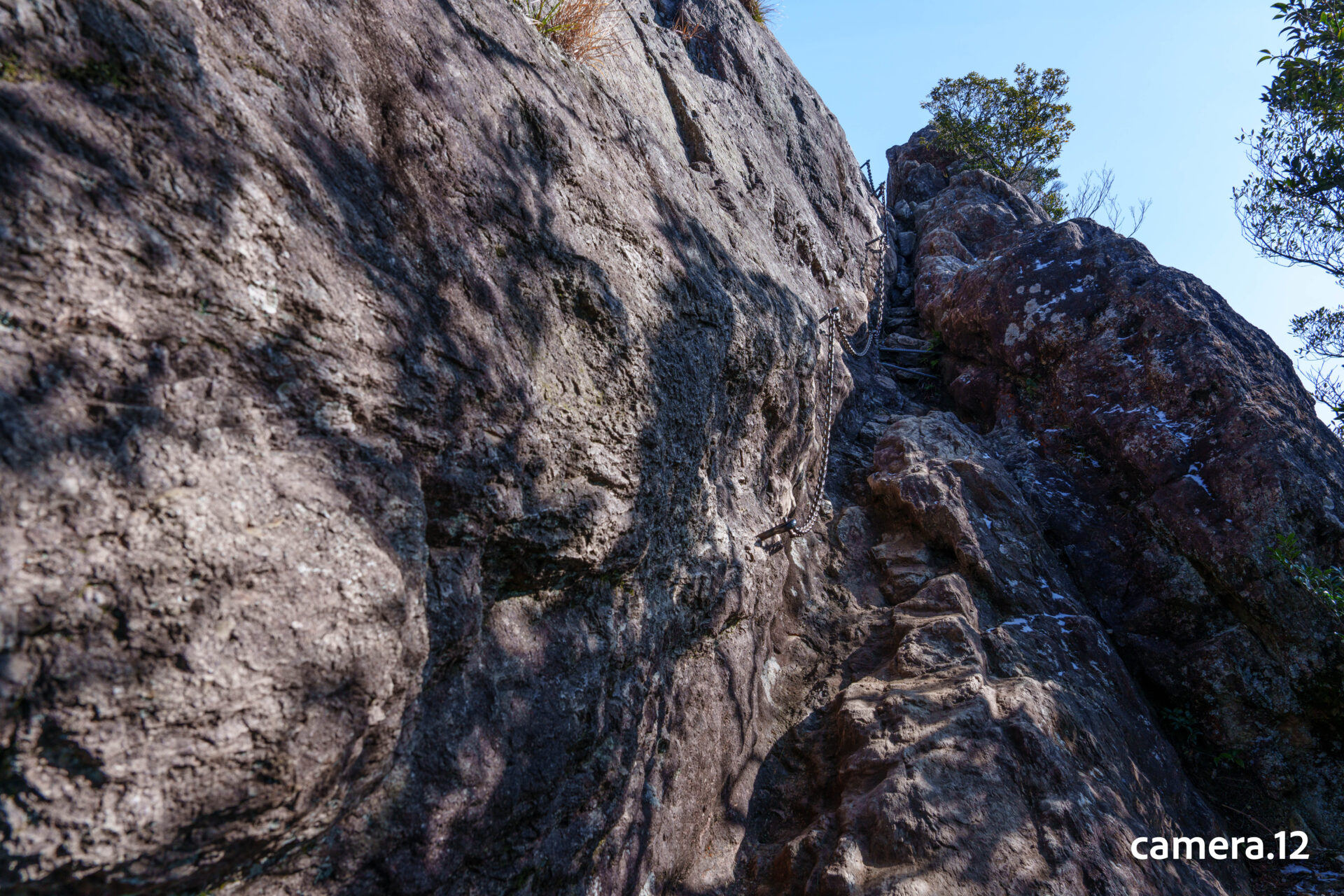 山頂付近は岩場が続き鎖場もある。難易度は決して高くはないがいろんな登山の魅力を味わうことができる山だ。